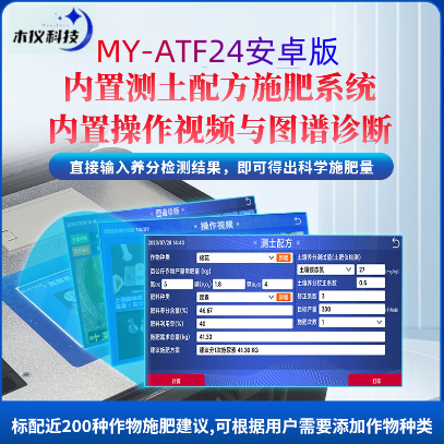 产品地址:http://www.zzmuyi.com/郑州木仪科技提供土壤养分速测仪、有机肥快速检测仪、肥料实验室设备方案,土肥仪、测土配方施肥仪、