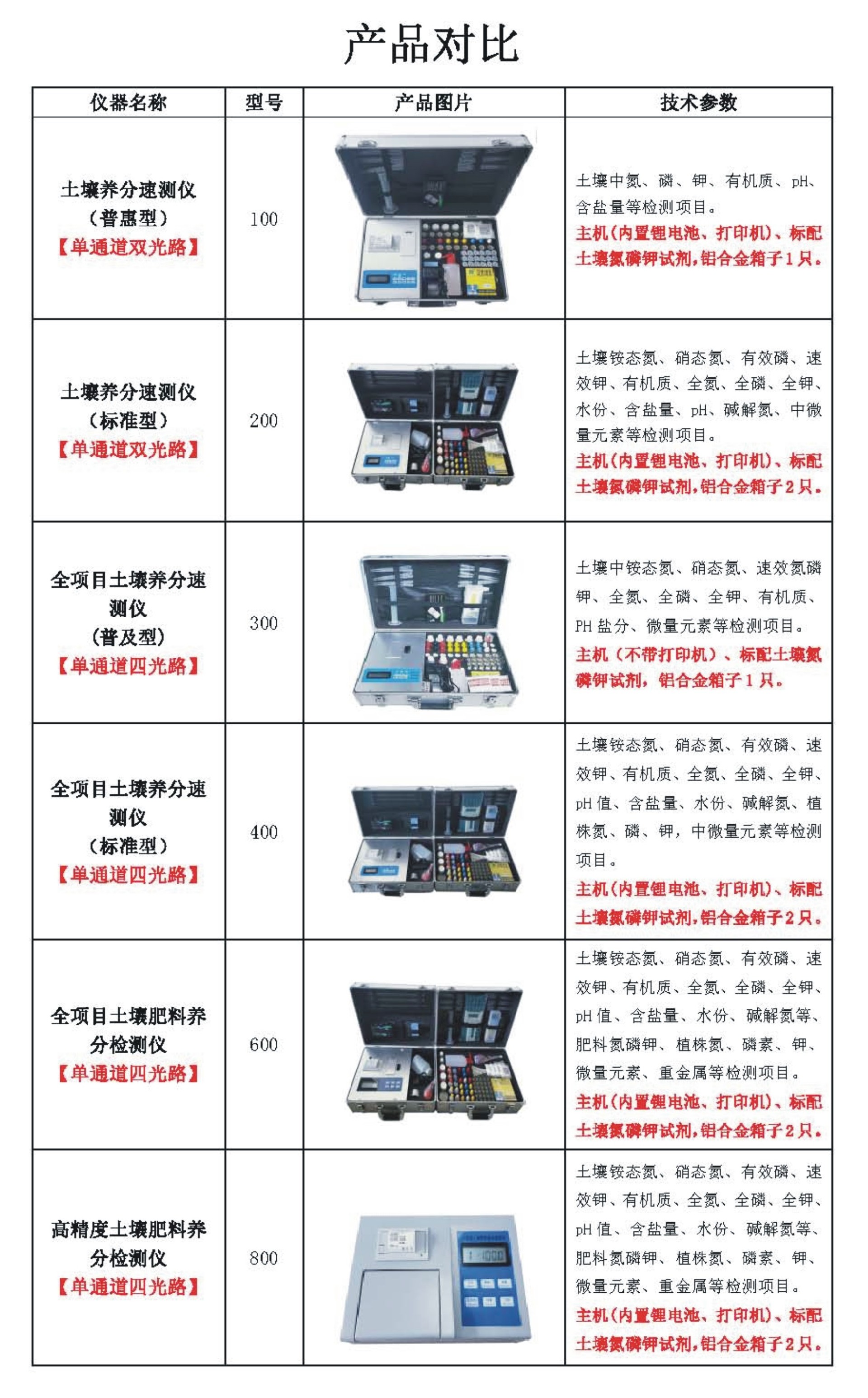 配套齐全:该仪器集药、器、仪为一体,携带方便,相当于一个小型实验室。适于农业服务部门或农资经销商、肥料厂商测土施肥和鉴别肥料真假。