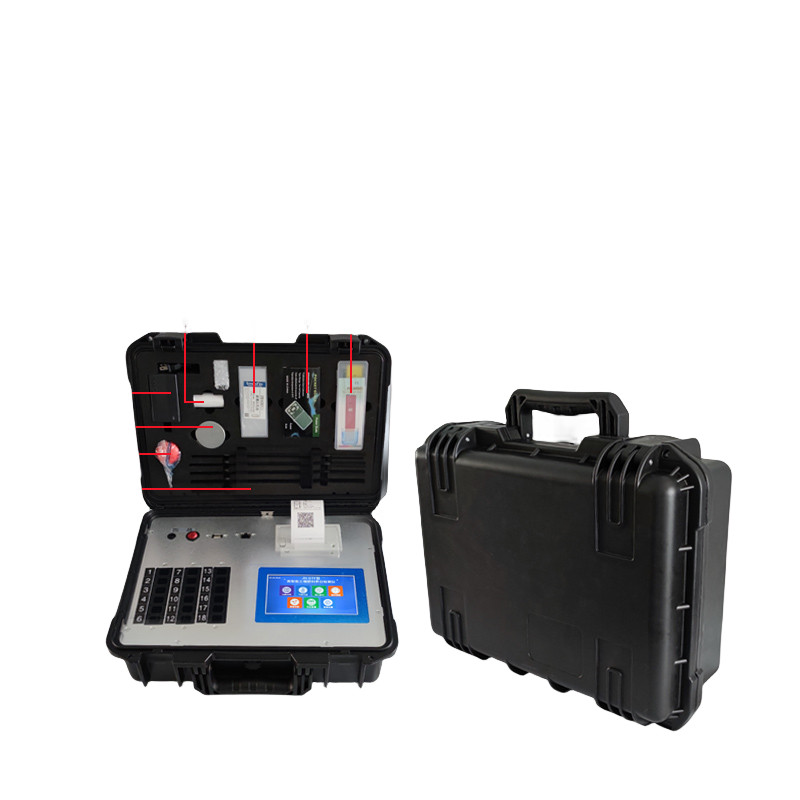 24.高强度PVC工程塑料+手提铝合金箱设计,坚固耐用,便于携带,供电方式为交直流两用,可野外流动测试配套成品药剂。