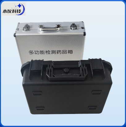 34.高强度PVC工程塑料+手提铝合金箱设计,坚固耐用,便于携带,供电方式为交直流两用,可野外流动测试配套成品药剂。