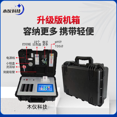34.高强度PVC工程塑料+手提铝合金箱设计,坚固耐用,便于携带,供电方式为交直流两用,可野外流动测试配套成品药剂。