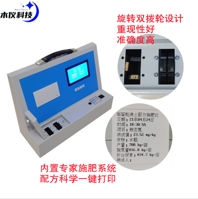 12.数据打印:内置热敏打印机,可打印出测试日期、测试时间、测试项目、作物种类、作物产量、施肥量等信息。