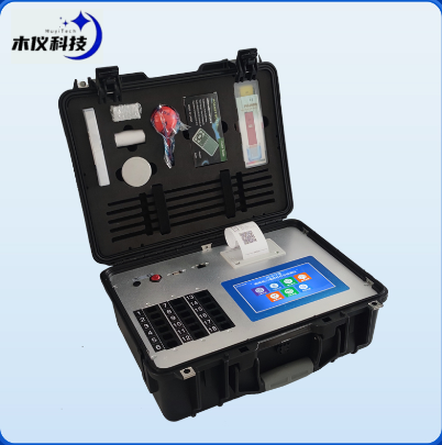32.高强度PVC工程塑料+手提铝合金箱设计,坚固耐用,便于携带,供电方式为交直流两用,可野外流动测试配套成品药剂。