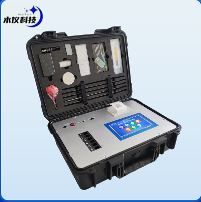 32.高强度PVC工程塑料+手提铝合金箱设计,坚固耐用,便于携带,供电方式为交直流两用,可野外流动测试配套成品药剂。