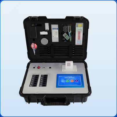 23.高强度PVC工程塑料+手提铝合金箱设计,坚固耐用,便于携带,供电方式为交直流两用,可野外流动测试配套成品药剂。