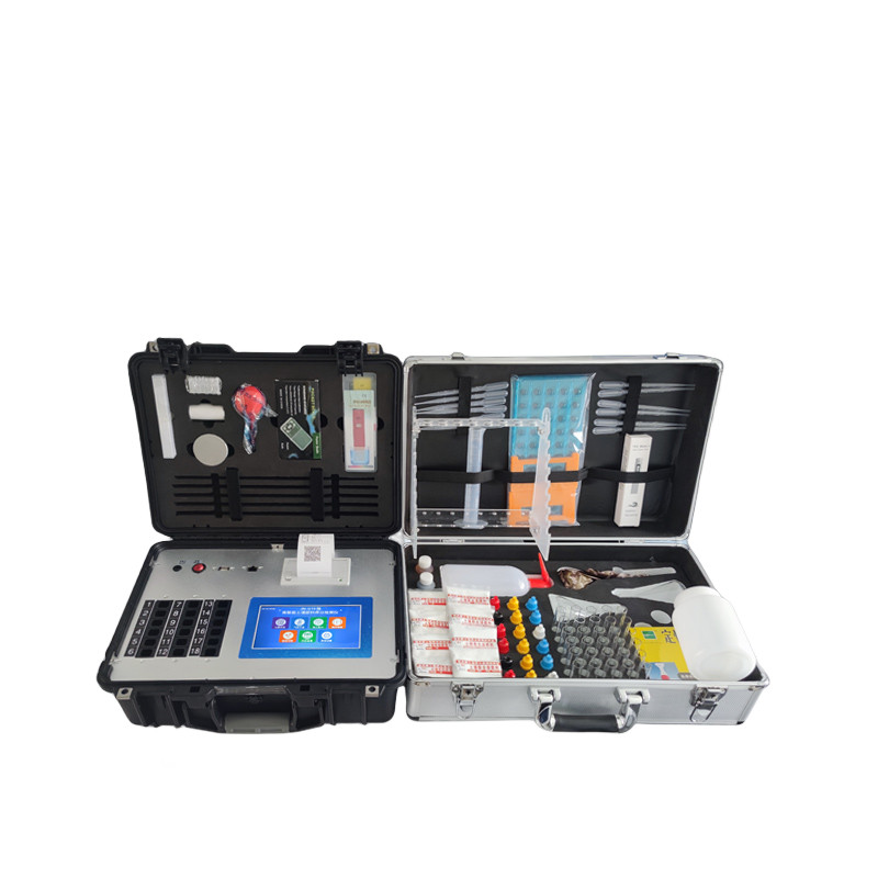 仪器箱:主机(内置锂电池、打印机)1台,比色皿12个,电子天平(200g/0.01g)1个,刻度吸管1、2、2、5、10mL各1支,洗耳球1个,小铝盒1个,直流12V充电器1个,pH计一个,盐分电导笔一个,说明书、合格证1套。