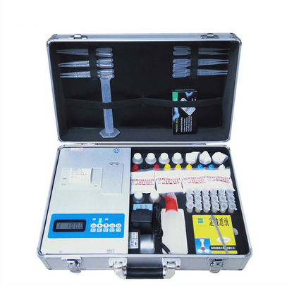 材料:检测项目:水质:氨氮、磷、钾、硝酸盐氮、亚硝酸盐氮、硫酸盐、氯化物、余氯、浊度、色度、硬度、铁、锰、铜、锌、硼、电导率、TDS(总盐量)、水温、酸碱度(pH)。扩展检测土壤铵态氮、有效磷、速效钾、有机质、酸碱度(pH)、含盐量、水分等。